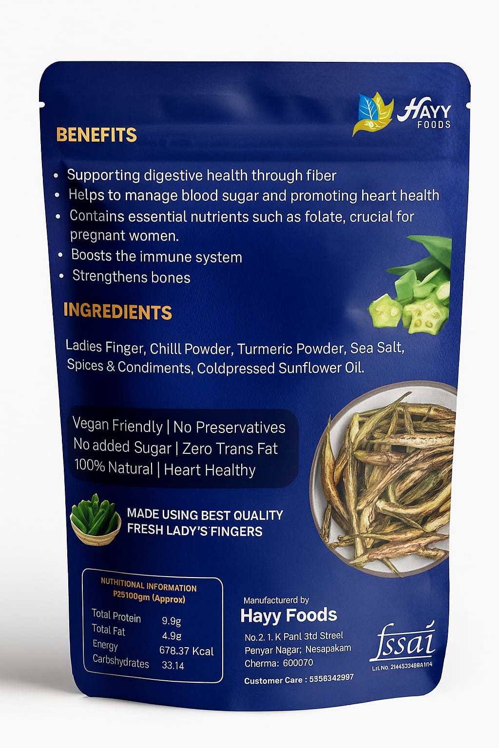 + Free ShippingOkra Chips are crispy roasted lady fingers. These tastes delicious for a healthy tea time snack. Ideal for weight watchers delight as it is made with very less oil. Diabetic Friendly Snack